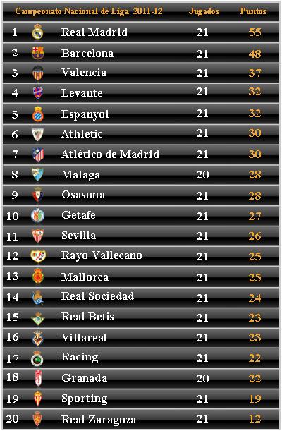 Inauguramos nueva sección. En élla reflejaremos los resultados más importantes de la jornada liguera de la semana, dando prioridad a los primeros clasificados y el puesto que ocupan en la clasificación general.